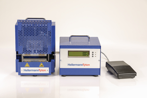 | Application | The ShrinkPad110 provides a fast and reliable process for the recovery of thinwalled heat shrinkable products with or without an adhesive liner. The heat process takes place through a direct contact method. The key components are the two specially heated elastic pads, which encapsulate the shrinkable product whilst transferring heat effectively with minimal heat loss. The electrically heated and pneumatically controlled pads can process material to a maximum diameter of 10 mm and a maximum length of 110 mm. |