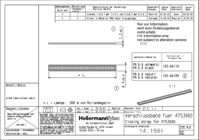 | Application Method | Strap and closures have to be applied with the electrically operated automatic cable tying Autotool System ATS from HellermannTyton. The cycle time is 1.3 sec. |
