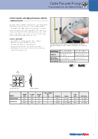 | Application | Q-mounts are ideally suited for holding cable ties in place. They would perfectly fit to all applications where a reliable and durable fixation is required. With its SolidTack adhesive Q-mounts offer an innovative fixing solution especially for low energy surfaces or if drilling a hole is not possible. Suitable for a wide range of applications on varnished or plastic or metal surfaces in many areas like electrical cabinet, railway, aerospace, automotive and agriculture machinery. |