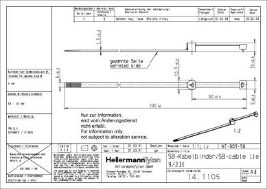 Short Description 1-Piece Fixing Tie for Weld Studs in the strap, releasable, PA66HS, 230x5.0 black