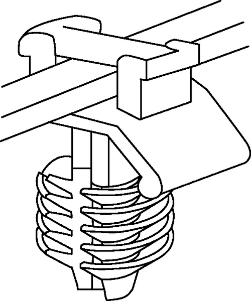 - Pre-assembled 2-piece fixing tie with fir tree foot part