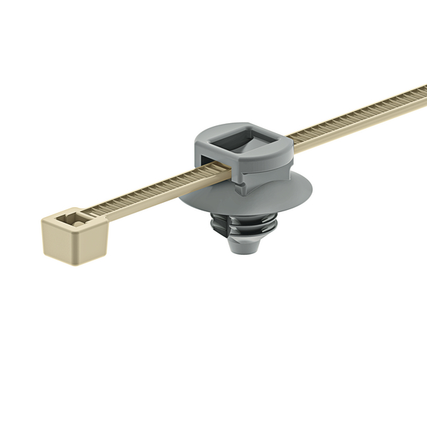 These two-piece fixings are supplied ready assembled and offer a simple and versatile method of bundling and fixing cables. The fir-tree base will easily push into pre-punched holes in panels or threaded, blind, holes and offers a very secure fixing. The two-piece design enables the head of the tie to be orientated to the required position to ease assembly, whilst the 'disc' on the top of the fir tree covers the hole and minimises the ingress of water and dirt. |