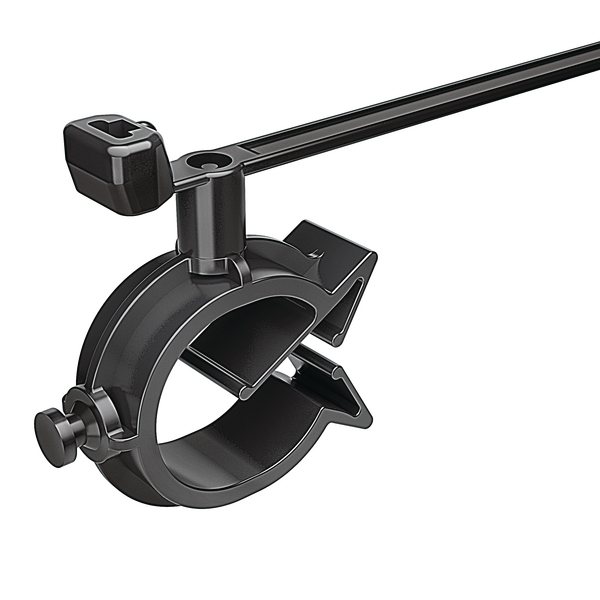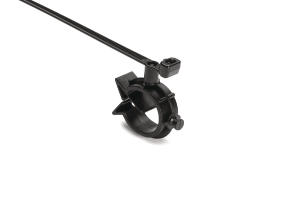 | Application | HellermannTyton’s 1-Piece Cable Tie with Pipe Clip secures cables to tubular frame rails. The cable tie bundles wires, cables or tubes, and the C-clip snaps onto the tubular frame rail. The clip can be removed from the mounting surface and reinstalled without additional fasteners. |