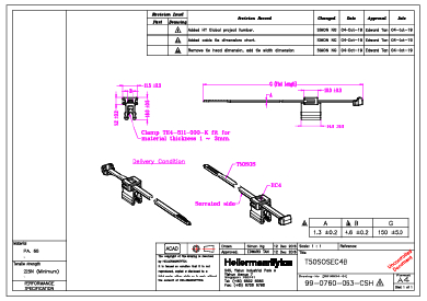 | Short Description | 2-Piece fixing tie 150x4.6 mm, for edges 1-3 mm, PA66HS / PA66HIRHS, black |