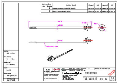 | Product Group | 1-piece fixing ties with fir tree, with disc, for round holes |