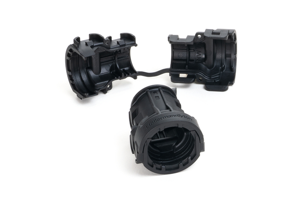 - Corrugated tube is completely enclosed by backshell, so that tube is not bruised in case of using an additional cable tie and cannot slip out of place especially during movement and vibration