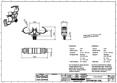 | Application | The clips are used to guide HV cables, harnesses and tubes. The products are designed to offer high stability within the application. The ratchet closure makes it possible to guide different cable diameters in parallel. |