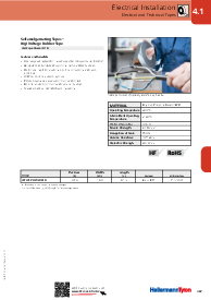 | Application | HellermannTyton offers a wide range of products for bundling, insulating, sealing and labeling cables and wires. PVC insulation tapes for low-voltage applications are available in various colors and dimensions. Self-welding, rubber-based tapes are ideal for insulating and sealing cables and connections from low to high and extra-high voltage ranges. HelaTape Tex fabric tapes are versatile and easy to write on. |