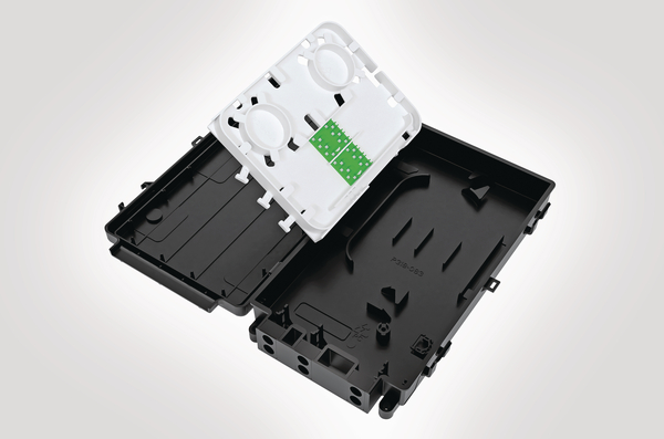 | Technical Description | The Multi Customer Connection Enclosure (MCCE) has been designed as a Building Entry Point (BEP) to provide a fibre termination and network demarcation point external to the connected premise in a Fibre to the Home (FTTH) network. In addition to providing an external test point the enclosure can also accommodate up to 12 customer fibre connections. The MCCE has an IP54 sealing performance with up to 6 entry/exit ports at the bottom of the enclosure which is suitable for cables or ducts up to a maximum diameter of 8mm. A loop through facility allows for single fibre elements to be removed and spliced whilst the remaining fibres can be fed on to the next connection point. Mechanical fixing is provided to secure all incoming/outgoing cables/blown fibre ducts and to provide strain relief where necessary. Internal positive fibre management and fibre retention clips maintain a minimum 30mm bend radius throughout. The MCCE is supplied with 4 x LC duplex adaptors and 8 x 1m pigtails and has features to secure a maximum of 12 fibre splices. The lid is hinged allowing quick and clear access to the internal fibre for splicing and termination and the lid can be replaced if damaged. |