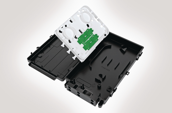 | Technical Description | The Multi Customer Connection Enclosure (MCCE) has been designed as a Building Entry Point (BEP) to provide a fibre termination and network demarcation point external to the connected premise in a Fibre to the Home (FTTH) network. In addition to providing an external test point the enclosure can also accommodate up to 12 customer fibre connections. The MCCE has an IP54 sealing performance with up to 6 entry/exit ports at the bottom of the enclosure which is suitable for cables or ducts up to a maximum diameter of 8mm. A loop through facility allows for single fibre elements to be removed and spliced whilst the remaining fibres can be fed on to the next connection point. Mechanical fixing is provided to secure all incoming/outgoing cables/blown fibre ducts and to provide strain relief where necessary. Internal positive fibre management and fibre retention clips maintain a minimum 30mm bend radius throughout. The MCCE is supplied with 4 x LC duplex adaptors and 2 x 1:4 bare end to LC APC PLC splitter and has features to secure a maximum of 4 fibre splices. The lid is hinged allowing quick and clear access to the internal fibre for splicing and termination and the lid can be replaced if damaged. |