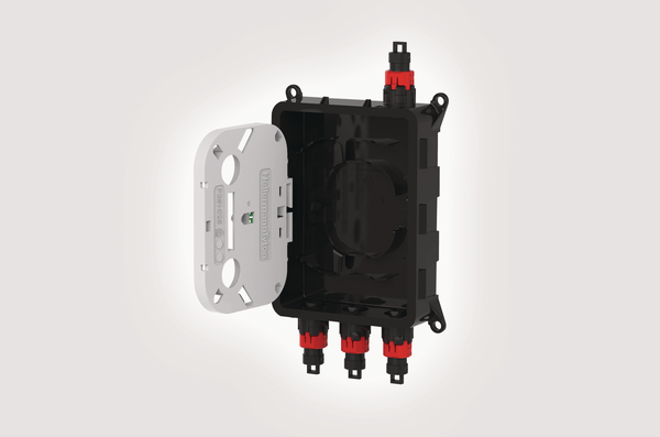 | Technical Description | The MDCN-XE is a compact hardened connector enclosure which offers IP68 environmental protection. The enclosure has four IP9 ports at the base of the unit. The IP9 ports are fitted with a SN duplex adaptor to allow for BiDi or duplex connections. The enclosure is supplied with a fibre splice tray which will manage a maximum of 12 x 3A 60mm splices for use where pre-connectorised fibre units cannot be deployed and the base has moulded retaining clips for improved fibre management. The enclosure is manufactured from UV stable PC/ABS and is supplied with a Gortex breather eliminating any internal moisture build up. |
