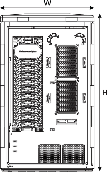 A modular and flexible fibre management system housed within a glass re-inforced polycarbonate street cabinet 594 x 998 x 400mm (WxHxD). (Riser and plinth supplied separately). The fibre management system offers 96 LC Simplex connections in a point to multipoint design with positive fibre management for both 250µm and 900µm fibre. Additional loop storage is provided for installations with loop through applications. The cabinet is supplied with 12 1 x 8 splitter assemblies, 3 fibre splice trays, 12 drop patch modules, 2 drop patch modules holders, drop cable manager and a 2 customer drop management brackets to accommodate 96 8mm blown duct tubes. Each splitter assembly consists of a pre-assembled fibre splice tray with a single pre-installed 1 x 8 splitter and 1 3A splice bridge. The splitter is pre-connectorised with 8 LC Simplex 900µm output fibres. These are routed to an 8 port LC Simplex drop patch module and connected to 8 LC Simplex adaptors. The additional trays are fitted with 2 splice bridges to accommodate a maximum of 16 3A splices. |
