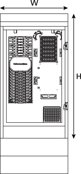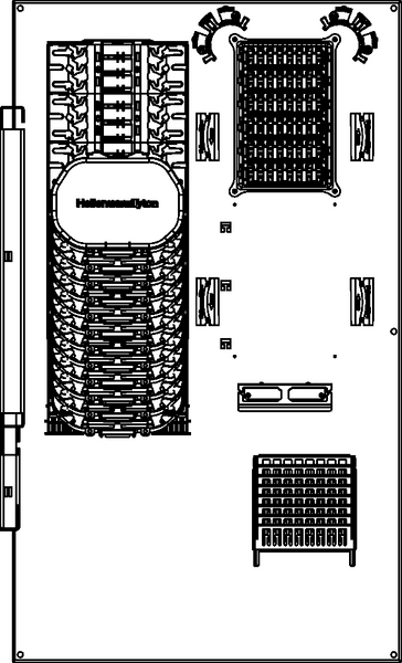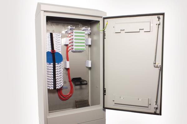 A modular and flexible fibre management system housed within a stainless steel powder coated street cabinet 535 x 998 x 315mm (WxHxD). (Riser supplied separately). The fibre management system offers 48 LC Simplex connections (expandable up to 96) in a point to multipoint design with positive fibre management for both 250µm and 900µm fibre. Additional loop storage is provided for installations with loop through applications. The cabinet is supplied with 6 1 x 8 splitter assemblies, 3 fibre splice trays, 6 drop patch modules, a drop patch modules holder, drop cable manager and a customer drop management bracket to accommodate 48 8mm blown duct tubes. Each splitter assembly consists of a pre-assembled fibre splice tray with a single pre-installed 1 x 8 splitter and 1 3A splice bridge. The splitter is pre-connectorised with 8 LC Simplex 900µm output fibres. These are routed to an 8 port LC Simplex drop patch module and connected to 8 LC Simplex adaptors. The additional trays are fitted with 2 splice bridges to accommodate a maximum of 16 3A splices. |
