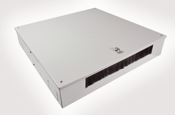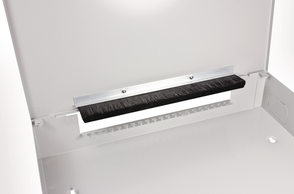 The Zone Cabling Enclosure from HellermannTyton provides up to 2U of patching space within the 600mm x 600mm area of a floor, ceiling tile or even on the wall. The zone cabling enclosure provides support for any standard 19” patch panels or active equipment as well as RapidNet panels for use with the pre-terminated cassette based solution. The zone cabling enclosure has a hinged and removable top access door along with removable covers and interchangeable brushes on two sides. The enclosure can be secured to raised floor pillars, concrete flooring or ceiling tiles and walls; making it extremely versatile in any mounted position. Internally, the zone cabling enclosure has front and rear cable management to support patch leads and manage bend radii. |