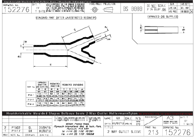 | Application | Heat Shrinkable moulded shapes for use in Electrical and Electronic Cable Harness Applications. |