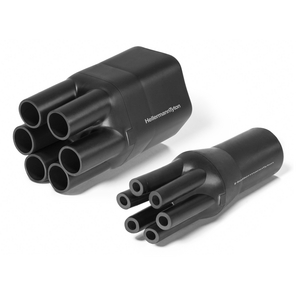 Cable breakouts are manufactured from a tough cross-linked polyolefin containing a flame retardant. This allows the breakout to be used for both interior and exterior applications. they offer excellent electrical and mechanical protection. Cable breakouts are supplied with an adhesive inner coating for reliable environmental sealing, and are available for 2,3,4,5 and 6 conductor cables. |