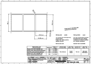 | Application Method | The functionality and durability of the labels can be negatively affected if improperly processed or applied. All surfaces to be bonded must be clean, dry as well as free from dust and grease. Avoid touching the adhesive surface of the label as this could impair the application performance. |