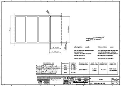 | Application Method | The functionality and durability of the labels can be negatively affected if improperly processed or applied. All surfaces to be bonded must be clean, dry as well as free from dust and grease. Avoid touching the adhesive surface of the label as this could impair the application performance. |