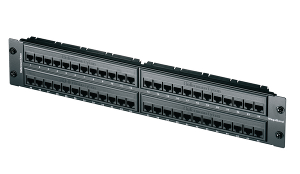 The MegaBand Panel has been designed to offer exceptional Category 5e performance and value and is available in 1U 24 port and 2U 48 port versions with optional rear cable management. The panel presents 48 Category 5e ports in 2U of space and is supplied with a sliding label panel and Rack Snap mounting fixings as standard. The MegaBand products are designed to support any data or voice protocol capable of running over a Category 5e cabling system. |