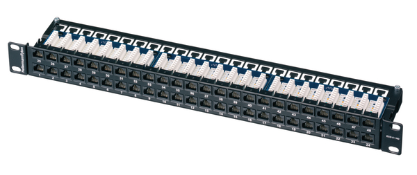 The Universal 110 Category 6 range of patch panels offer exceptional performance and are also available in 1U 24 port, 1U 48 port right angled and 12 port vertical versions. The 2U 48 Port Panel is constructed of 8 modular units, each offering 6 RJ45 ports allowing for any of the 6 port modules to be replaced in the case of port damage or failure. The Universal 110 2U 48 Port Panel is supplied with or without Rack Snap mounting fixings and an optional rear cable manager is also available. The Universal 110 Category 6 products are designed to support any data or voice protocol that is capable of running over a Category 6 cabling system. |