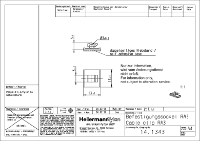 Cable clip for adhesive use/with pipe/tube holder, Dmax=3.0mm