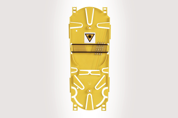 The Hellapon medium is a rectangular tray designed for single element applications which is manufactured from ABS and finished to a high specification to eliminate the risk of snagging or microbends. All retaining tabs on the tray have radius edges and rounded corners where fibre may pass. The overall dimensions of the tray are 235 x 96 x 7mm and the maximum splice capacity of 24 x 3A (double stacked) splice protectors up to 60mm long (Style C) or 16 x 3A splice protectors up to 45mm long (Style A and B). The tray is available in three styles, Style C which accepts either a standard HellermannTyon 3A or ANT/Crimp splice bridge, Style A and C have moulded splice fins (3A or ANT/Crimp. Styles C and A can be mounted on a fixed support or flexible side hinges for FRBU closures and Styles B has side mounted pivots for FML closures. Style A trays are colour coded, white for 3A and yellow for crimp inserts. |