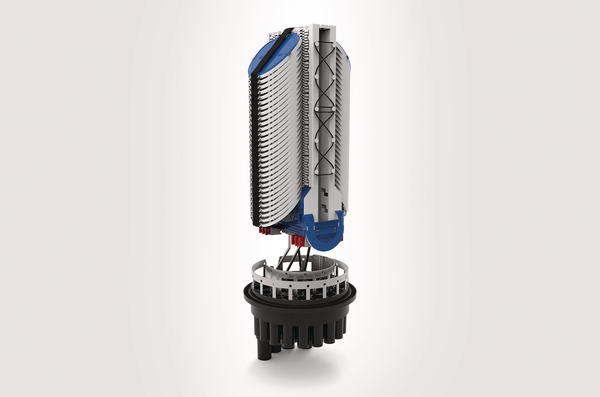 The UFC Integrated Routing (IR) C Length Double Stacked closure is available with a Cablelok (Polypropylene) or Heatshrink (Flame Retardant Polypropylene) base. The base configuration of 28 round ports and 2 oval ports covers a cable diameter range of 4.0 – 29.0mm when using Cablelok mechanical seals and 6.0 – 35.0mm when using heatshrink. The mounting system is manufactured from Grade 304 stainless steel and the backplane is an aluminium extrusion which manages 60 IR SE trays fitted with Crimp/ANT splice bridges. The position of the mounting system allows easy access for the routing of the fibre on to the trays. The trays and fibre optic routing module are white which makes it easy to see the colour of the fibre elements as they are routed through the positive fibre management system. Fibre slot retaining blocks guide fibre elements in to the IR system, the foam pad on the retainer is partially cut through to accommodate a range of fibre counts. All IR system cover plates are coloured blue identifying them as removable parts allowing access to the fibre, the fibre slot retaining block and tray retaining clips are coloured red to aid in identification if they are dropped. |